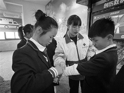 近日,浦江县园区小学红十字生命体验馆举行开馆仪式,这是金华市第一家以互动体验方式向学生普及安全防范意识、自救互救技能的综合性体验馆。图为学生在馆内体验。(本报通讯员 张爱丽 郑文良 摄)