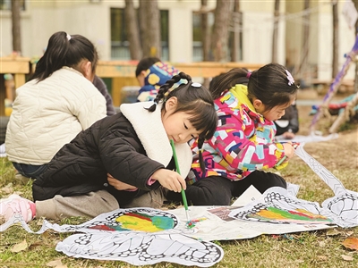 近日,义乌市实验小学附属幼儿园开展“我和春天去约会”主题活动。教师带领幼儿画春牛,送春牛,祝福亲朋;在百菜园采摘艾叶,揉艾糍,尝青团;在树林里捡落叶,看松鼠,朗诵经典诗歌……最后,幼儿们拿起画笔,将五彩的颜色涂抹在风筝上。