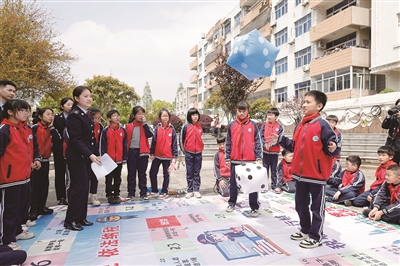近日,温岭市税务局联合市司法局走进浙江第一所少年税务学校箬横小学,开展“税法进校园,春风润童心”税法宣传活动。图为学生和税务干部在税法广场玩起了“税收飞行棋”游戏。