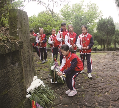 清明时节,一队队穿着校服的学生走入墓前神道,他们是附近王充小学的学生。在2019年之前,这所学校的名字是绍兴市上虞区章镇镇中心小学,它有100多年的历史。学校有一项延续多年的老传统,就是每年清明节,教师会带领学生们到王充墓祭扫,在墓前摆满鲜花。