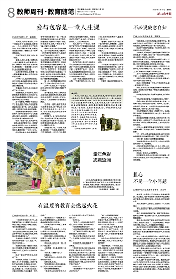 意料之外,一年多前这短短5分钟的谈话竟在他的心中留下如此深刻的痕迹。回想那个有温度的午后,幸好,我发现了沮丧的小洪;幸好,我及时排解了他内心的烦恼……我相信,有温度的教育一定会燃起火花。