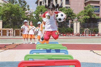 近日,湖州市第三幼儿园祥和园区开展“迎亚运足球嘉年华”活动。幼儿们在一系列足球游戏中收获欢乐、增强体质,迎接亚运会的到来。