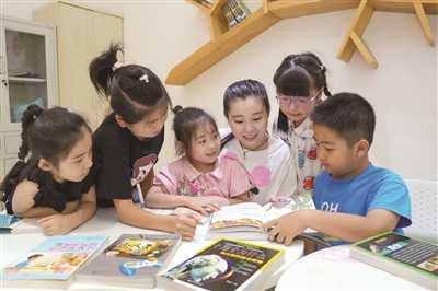 6月,浙江省正式启用首批57家“家门口青少年宫”,发挥青少年宫阵地优势,推动师资、课程下沉,让广大青少年儿童在家门口也能享受到优质的校外教育资源。今年暑期,长兴县太湖街道晨光社区里的“家门口青少年宫”,为周边儿童提供了为期35天的公益暑托服务。图为孩子们在进行阅读分享。