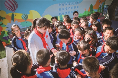 近日,绍兴市北海小学邀请杭州亚残运会冠军蒋裕燕来校与学生交流。学生们把冠军团团围住,为她的夺冠经历喝彩。