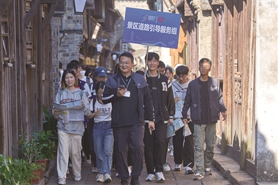 2023年世界互联网大会乌镇峰会即将开幕。来自全省高校的807名“小梧桐”在乌镇参加会前培训。今年,乌镇峰会迎来第10个年头。10年来,省内高校共有8934位“小梧桐”参与了这一活动的志愿服务。图为志愿者们在熟悉乌镇当地交通路线,为引导服务做准备。(本报通讯员 沈 婷 摄)