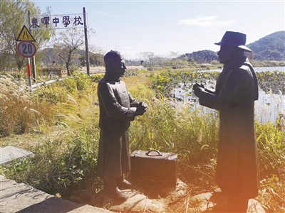 而位于绍兴市上虞区的春晖中学,可谓一部凝固的浙江现代教育史,这部历史的书写者正是经亨颐和他的团队。校园里不仅有经亨颐主持营造的教学楼、办公楼、宿舍楼、大礼堂等各式建筑,有他题写的校名“春晖中学校”和校训“与时俱进”,有他曾经漫步徜徉的一草一木,有他栖身并常与同僚雅集的住所,更有他与妻女三人共聚长眠的坟茔。
