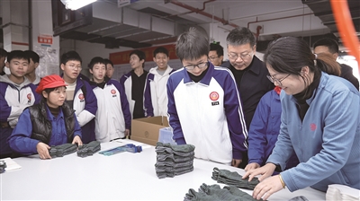 日前,江山高级技工学校组织近200名学生前往当地企业实习。图为在浙江健盛集团江山针织有限公司,车间工作人员在向学生们讲解注意事项。
