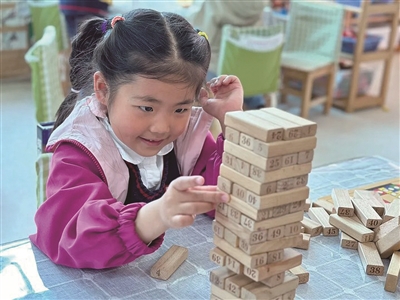 此外,意见还将幼儿园“木玩游戏”园本课程实施纳入幼儿园发展性督导评估。“要求明确,目标清晰,老师就能干劲十足,然后会把这份热爱回馈到孩子身上。”唐毅始终认为,木玩只是一个载体,木玩游戏不是幼儿园课程的全部,开展木玩游戏课程的目的是让幼儿玩得快乐,得到发展。