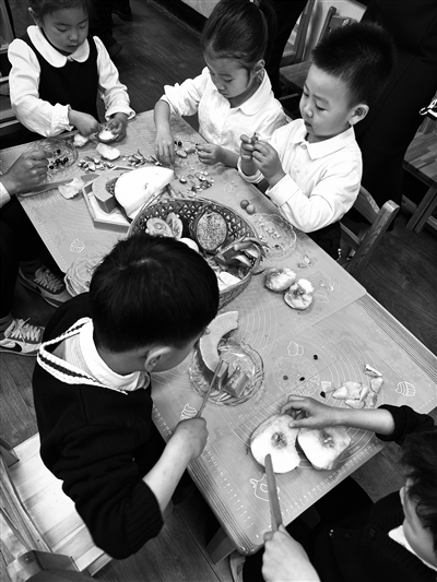 这正是该园践行“走近儿童心灵”儿童观的生动体现。“幼儿园尊崇以幼儿为中心,融合中西方文化特点,形成了以方案教学为主要课程活动形式的三位一体课程体系。”刘淑婷介绍。丰富的材料可以帮助幼儿动手动脑,为此该园开设光影探索、泥塑、皮影戏等丰富多彩的课程活动,并拓展教学资源,组织幼儿到社区、博物馆、大自然中去探索和学习。