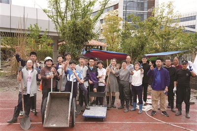 目标虽定,但现实“骨感”。面对经费有限这一难题,陈向红发动全校师生一起动手,共同破解难题:砌砖块、造土灶、围竹篱,学校农场建起来了;挖渠道、垒石块、涂泥墙,荷花池也有了。师生们还自发从山上或老家挖来了映山红、紫藤罗、香榧、芍药等植物,种植在学校的各个角落。