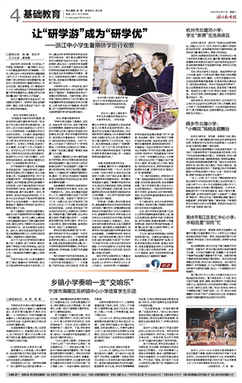 亲近自然、知识科普、文化体验、户外探险、技能拓展……毫无疑问,长达2个月的暑假是研学旅行的高峰期。7月初,《浙江省中小学生研学旅行课程指南(试行)》(以下简称《指南》)出台,进一步完善了浙江研学旅行规范管理机制,推动中小学生研学旅行课程的规范化、专业化发展。据记者调查,这个暑假省内不少中小学校都组织了研学活动或者布置了研学类暑假作业,提倡让学生们背起行囊,践行“读万卷书,行万里路”。