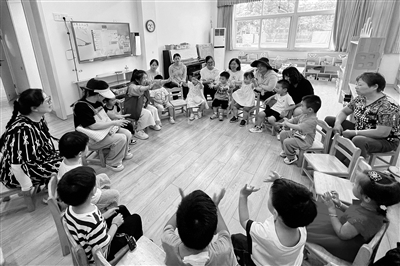 近日,湖州开发区实验幼儿园向阳花志愿团进入社区,开展“携手共进,快乐早教”体验活动。该园充分发挥党员、团员教师志愿者的力量,以情景体验和游戏为载体,在亲子教学活动中渗透家庭教育理念,为0~3岁婴幼儿家庭带去全面、科学的早教指导与服务。图为亲子游戏活动现场。(本报通讯员 邹丽君 摄)