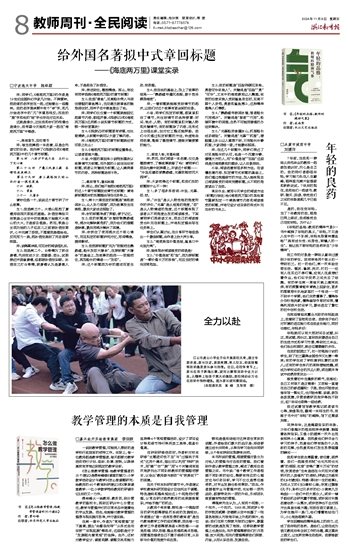 《年轻的品格:教师的精神气象》一书中阐释了年轻的奥义,“年轻,不只是人生中的一个阶段,年轻本身意味着品格”“具有成长性、终身性,照耀人的一生”。能让我不断年轻的良药来自“少年精神”。