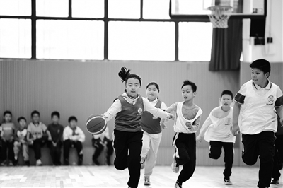 近日,衢州市实验学校教育集团灵溪校区开展超级篮球对决赛。活动分球队循环赛、大众运球接力赛和师生投篮赛三部分。人人参与,团结协作,师生共享,很好地演绎了篮球运动的拼搏精神。图为四年级的醒狮中队和阳光中队在对决。