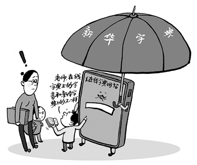 近日,有媒体记者调查发现,一些在线字典网站打着“新华字典”旗号,吸引用户点击访问,实际提供的内容却错误百出,有的字音字形有误,有的词语释义不当,有的例句前言不搭后语。这些在线字典以假乱真,不仅涉及网络侵权问题,更重要的是坑害了广大读者。误人子弟的在线字典亟待规范,期待各方形成合力,加大治理力度,净化网络环境,维护汉语生态。 (王 铎 绘)
