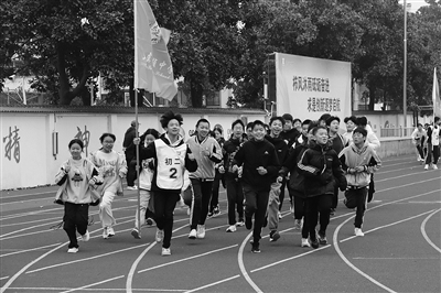 为推进阳光体育进校园,绍兴市上虞区于日前启动第十七届学生阳光体育冬季长跑活动,全区各中小学校纷纷响应,掀起了一场校园运动热潮。图为竺可桢中学操场上,学生跑步时的情景。