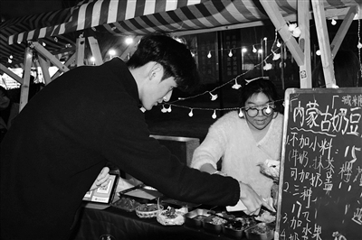 2月26日,温州商学院举办家乡特产创业集市。当天,集市上70余个学生摊位依次排开,来自新疆、甘肃、内蒙古等地的特色美食琳琅满目。图为集市现场。