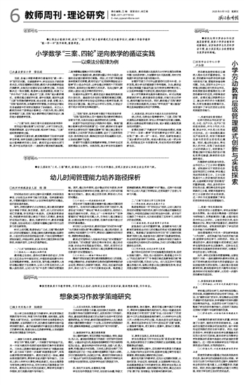 劳动教育是贯彻落实立德树人根本任务的重要途径。当前,劳动教育中依然存在学生参与积极性不高、管理效率偏低等问题。为此,东阳市白云中心小学通过构建红领巾劳动合作社,积极探索层级管理模式在小学劳动教育中的应用,并取得良好成效。该模式通过明确责任分工、建立科学的评价与激励机制,为学生搭建自我管理平台,有效提升了学生的劳动主动性和深度劳动能力。