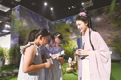 国庆中秋假期,全省中小学生走进博物馆、美术馆等场馆,感受历史文化魅力。图为10月6日,学生在东阳市美术馆参观东阳古代书院文化展。