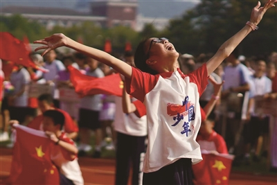 近日,在杭州外国语学校第60届田径运动会入场式上,初一(1)班学生谷玖诺的轻盈舞姿显得特别耀眼。作为杭州市青少年活动中心少儿艺术团舞蹈团成员,她是入场式舞蹈的编舞和领舞。活动现场,中国舞舒展的舞姿表达了青少年对祖国繁荣昌盛的美好祝愿,以及蓬勃向上、拥抱未来的精气神。