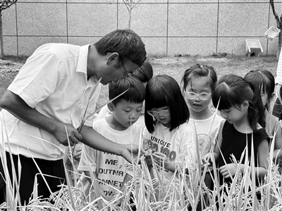 近日,青田县润嘉幼儿园迎来了一位特别的教师——2022年度“大国农匠”徐冠洪。他从田间走来,为教师们带来了干货满满的技术指导:训练鱼类形成条件反射,将厨余垃圾科学制肥,专业的实践智慧让课程内容真正扎根生活。图为徐冠洪俯下身,用生动的比喻为幼儿讲解“稻为鱼遮阴,鱼为稻除虫”的共生奥秘。