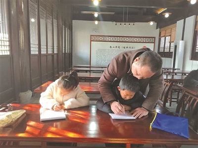 如今,这座复建的古书院被赋予了新使命。2025年秋季学期,挂牌为“家门口青少年宫”,是衢州首个乡镇“家门口青少年宫”。每周六,专业教师在此开设硬笔书法课,学费比县城青少年宫的要低100元。“马金镇有1000余名小学生,多数为留守儿童,去县城要40分钟车程,送教下乡势在必行。”开化县青少年宫负责人曾秋雨说。对此,镇政府与县青少年宫同向发力,利用当地空闲资源开办“家门口青少年宫”,以满足乡村孩子周末监护与教育需求。包山书院自2018年复建后,积累了研学服务经验。“挂牌青少年宫,可谓水到渠成。”马金镇团委书记陆晨说。