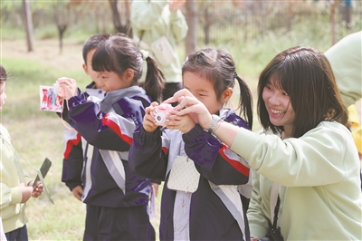 近日,杭州市萧山区童蒙幼儿园开展“我是公园代言人”主题实践活动,引导幼儿通过自主探索与创意表达,为公园设计艺术体验区、规划趣味运动路线、绘制安全标识。图为幼儿正在拍照记录观察所得。