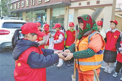 1月23日,舟山市普陀区六横镇台门学校组织学生向环卫工人、公交车司机等一线工作人员派送腊八粥。活动以温暖的方式传承腊八节民俗,也在潜移默化中滋养了学生的感恩之心和乐于助人的品德。