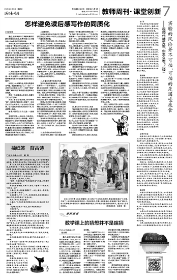 纵观这100余篇作品,同质化现象相当严重。就拿标题来说,“从××到××”这样的句式就有30多个,“点燃”“照亮”“播撒”“静待花开”等词语的使用频率也非常高。