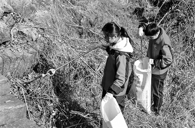 近日,诸暨市湄池中学的师生在诸暨杭坞山开展了一场特别的“植绿护绿”行动。高二学生身着红马甲,手持垃圾夹,化身“山林清道夫”,清理石缝间的包装袋、草丛里的塑料瓶等垃圾。